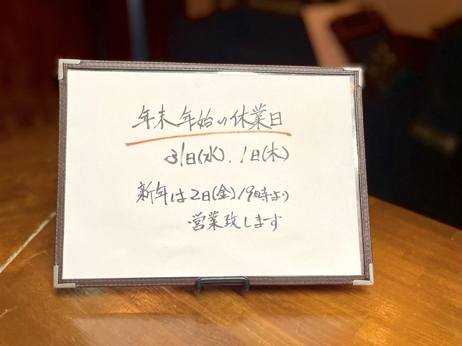 年末年始のお休みは31日(水)、1日(木)です
