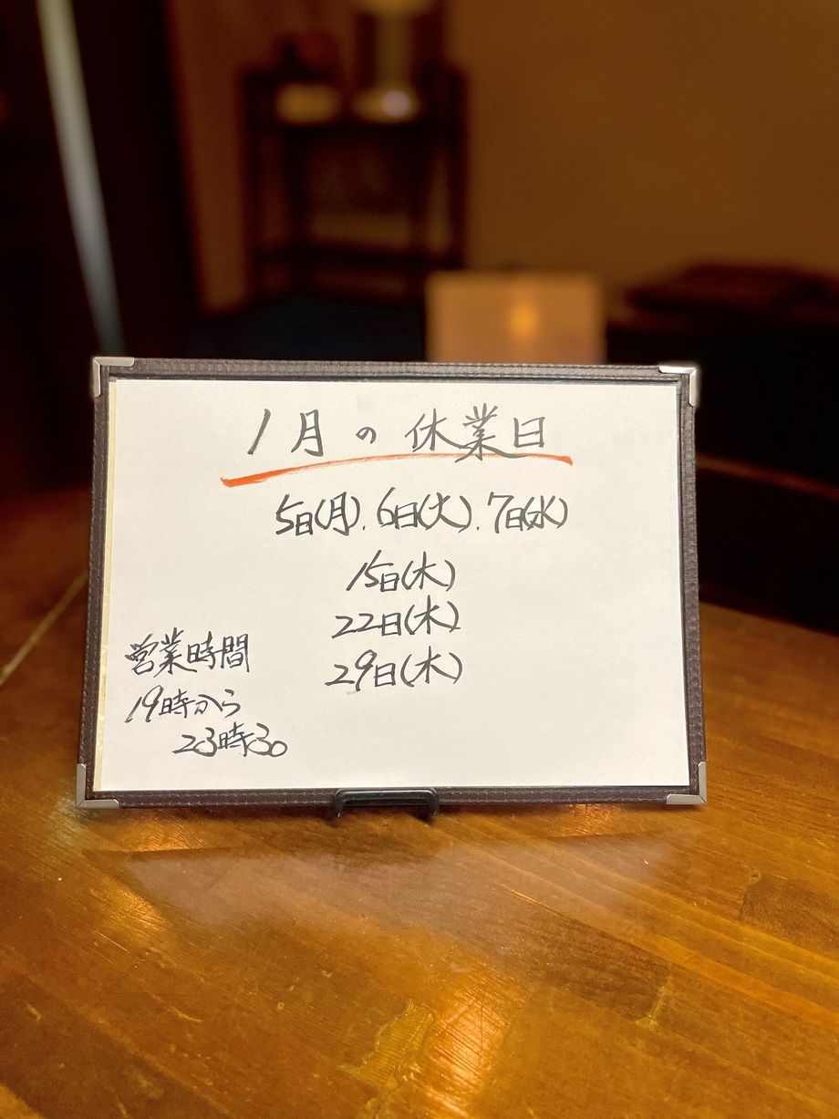 1月の休業日のお知らせ