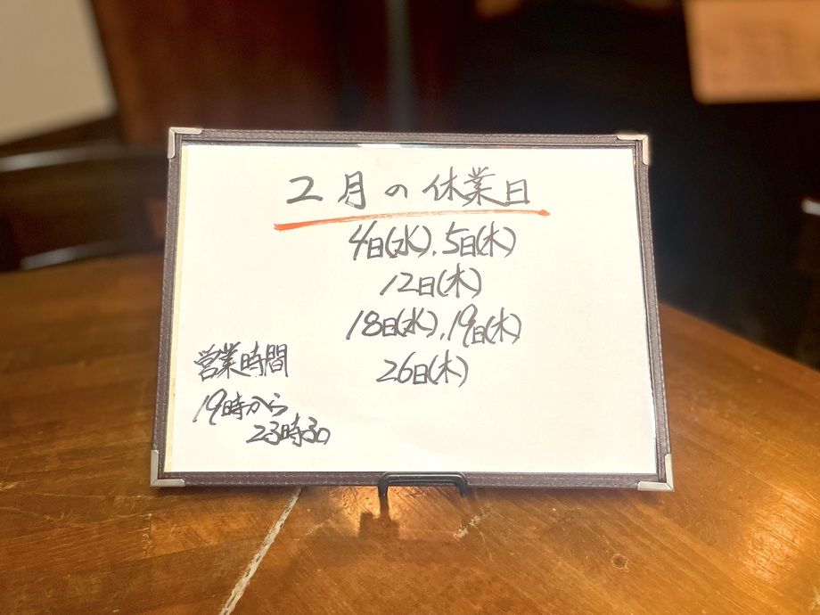 2月の休業日のお知らせ