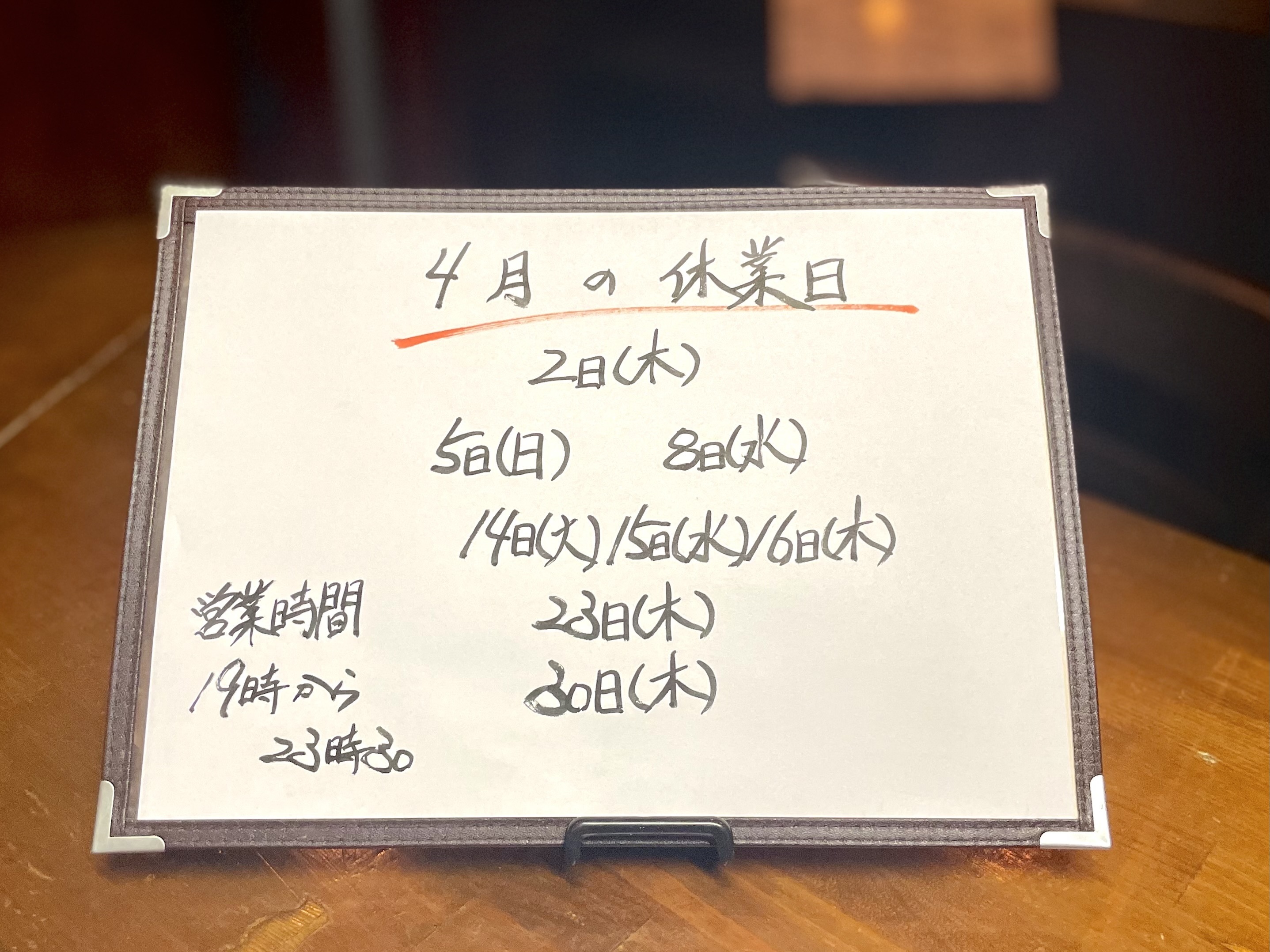 4月の休業日のお知らせ